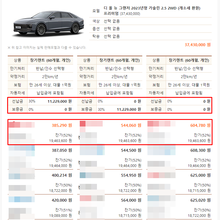 오늘은 그랜저 장기렌트 가격 비교를 통해