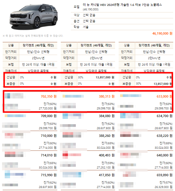 그렇다면 카니발 하이브리드 차량의 장기렌트 월렌탈료 어떻게 될까요?