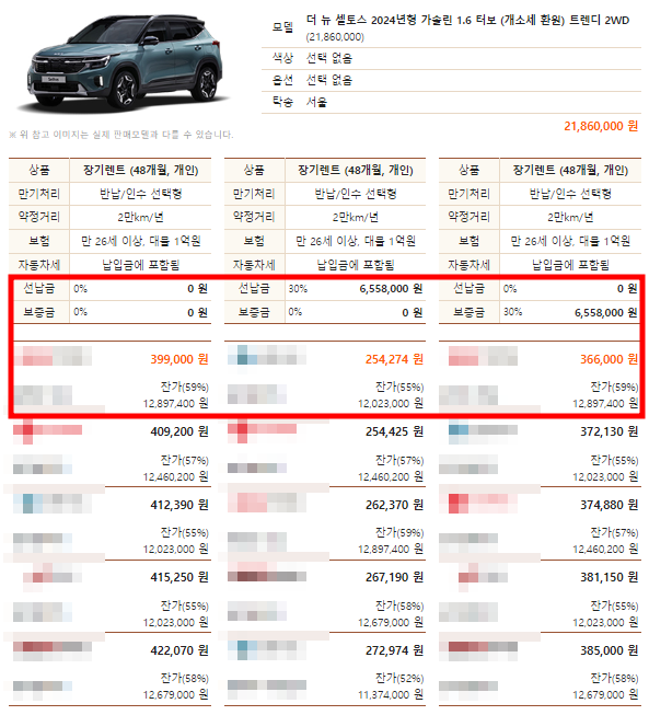 자동차 할부 구매의 가격을 비교해보시면 장기렌트카 더 저렴하다는 것을 알 수 있습니다.
