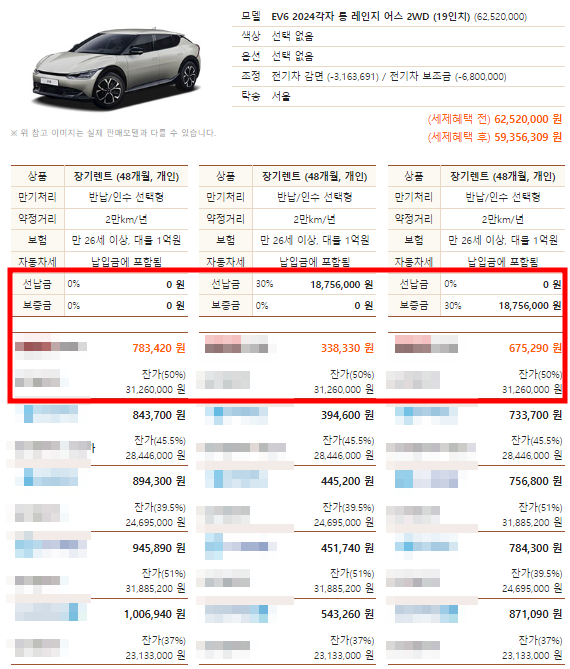 그렇다면 EV6차량의 장기렌트 월렌탈료 어떻게 될까요?