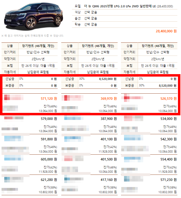 그렇다면 QM6 차량의 장기렌트 월렌탈료 어떻게 될까요?