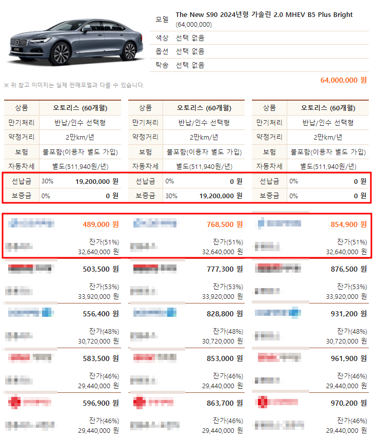 볼보 S90 리스 / 렌트 / 할부 차이 정리