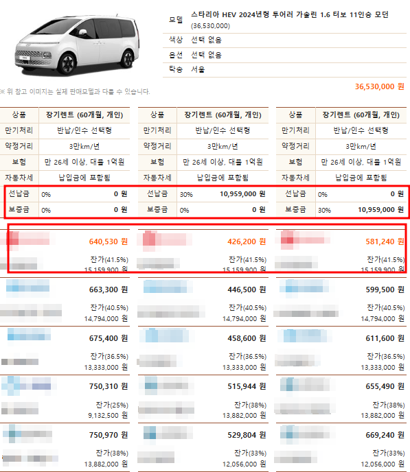 스타리아 하이브리드 장기렌트 리스 최저가는