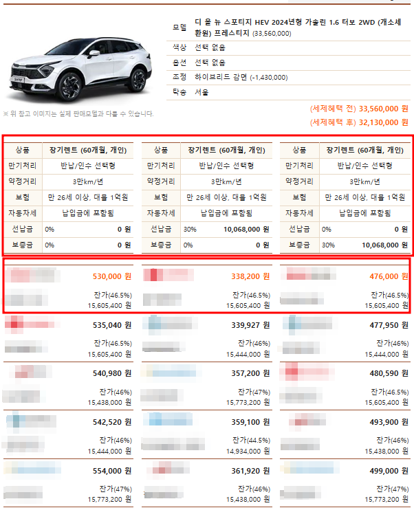 스포티지 하이브리드 장기렌트로 구매했을 때 어떤 점이 좋은지