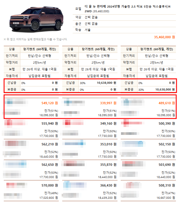 싼타페 가솔린 장기렌트 최저가로 받을 수 있는 방법은 여러 업체에서의 비교견적을 받아보는 것입니다.