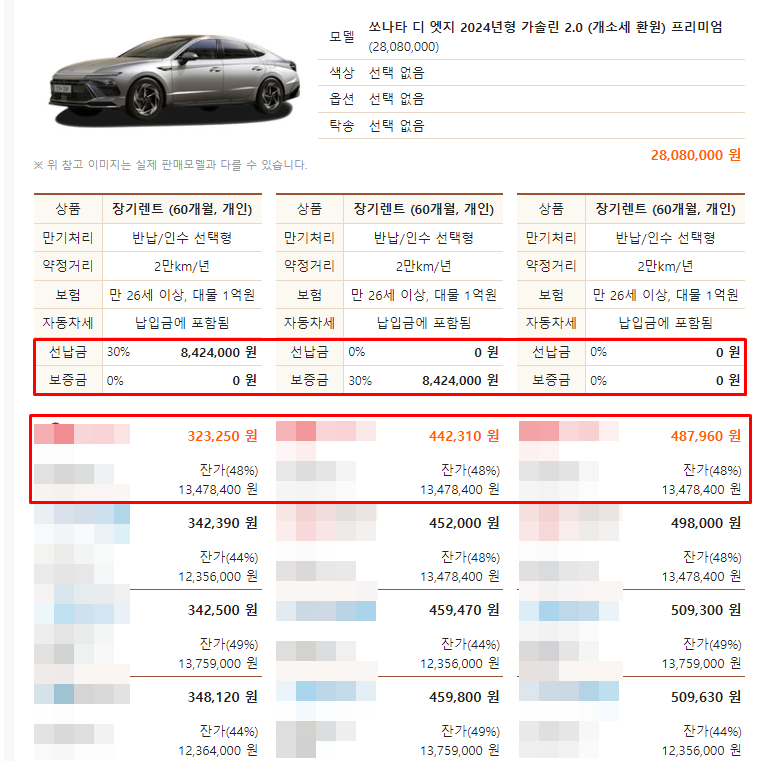 오늘은 쏘나타 장기렌트 가격 비교를 통해