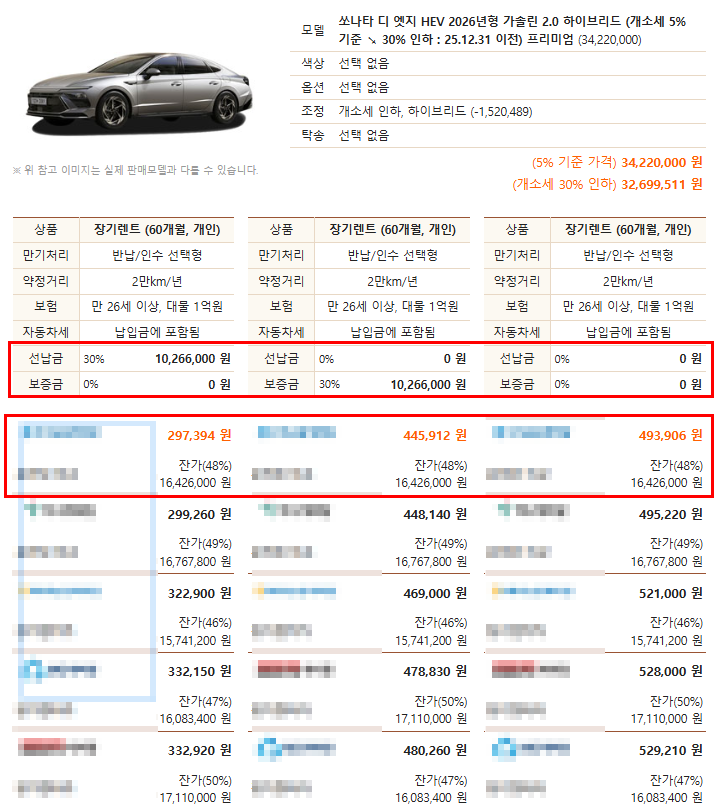 그럼 지금부터 쏘나타 하이브리드 장기렌트 가격에