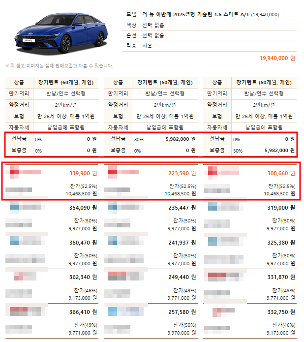 아반떼 가솔린 장기렌트 견적비교 최저가