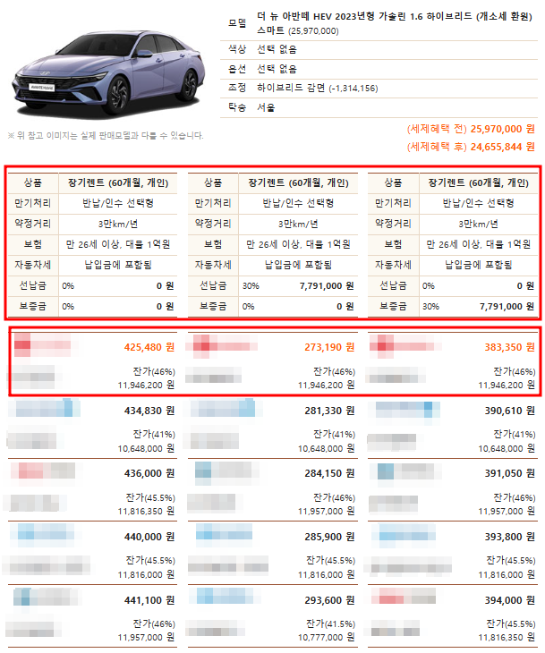 아반떼 하이브리드 장기렌트 최저가
