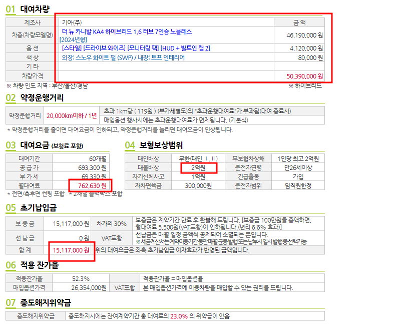 카니발 장기렌트 후기 / 저신용 승인 견적표