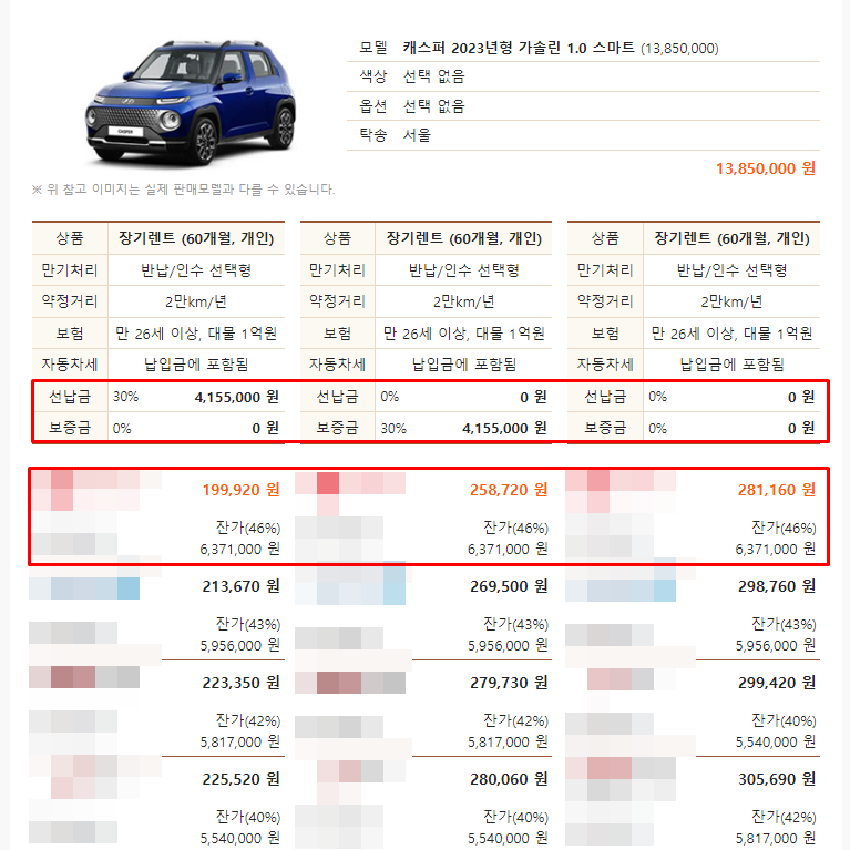 오늘은 캐스퍼 장기렌트 가격 비교를 통해