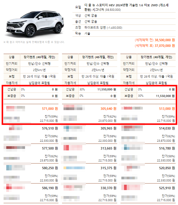 그렇다면 스포티지 하이브리드 차량의 장기렌트 월렌탈료 어떻게 될까요?