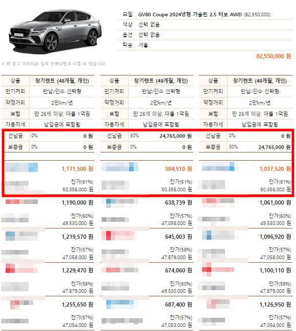 제네시스 GV80쿠페 장기렌트 월렌탈료