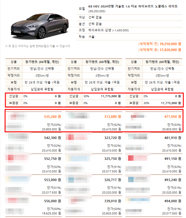 장기렌트 장단점부터 K8 하이브리드 모의견적까지