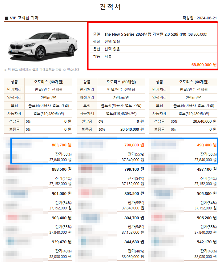 차량 : 2024 BMW 5시리즈 2.0 가솔린 520I