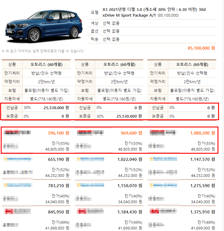 BMW X3 리스 가격
