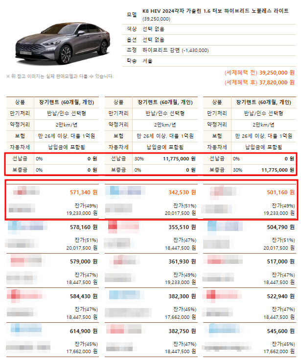 K8 하이브리드 장기렌트로 구매했을 때 어떤 점이 좋은지